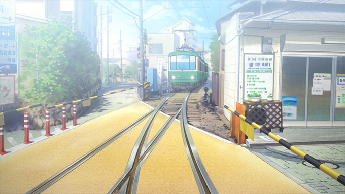 自分にとってよく知らなかった町というところもあり、ロケハンは、綿密に行いましたね。この作品ではアニメの非現実な部分とリアルな風景が共存できたらいいなとも思っていたんです。全てを現実に即したものにするよりは、両方混ぜてこの世界を作れたらいいかなと。江ノ電も遊びに行く際に乗ったことがあるだけだったので「もしこれに乗って通学していたら?」ということを考えながら周りを見たりして。それまで知っていた部分と知らなかった部分と、両方を見つけられたので、それらを一緒に画面に落とし込みたいなと思いました。